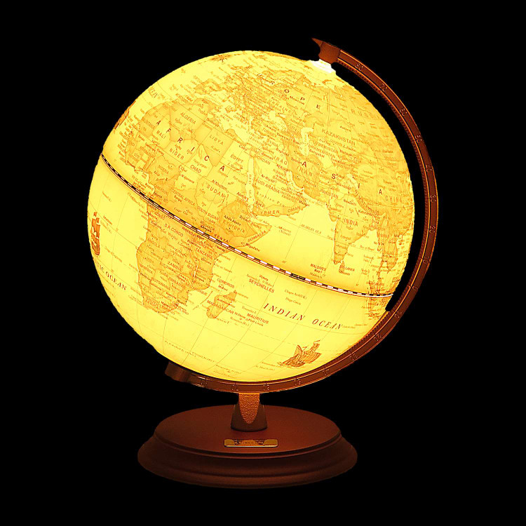کره جغرافیایی با قطر 20 سانتی متر پایه چوبی چراغدار